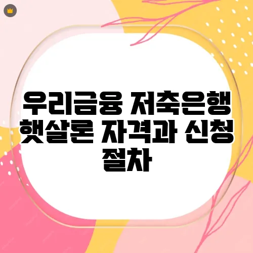 우리금융 저축은행 햇살론 자격과 신청 절차