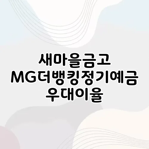 새마을금고의 MG더뱅킹정기예금은 안정적인 자산 운용을 원하는 많은 사람들에게 매력적인 선택입니다. 특히 우대이율은 고객에게 더 유리한 조건을 제공하여 최대 금리를 받을 수 있는 기회를 제공합니다. 그렇다면 과연 어떻게 이 최대 금리를 받을 수 있을까요? 이 글에서는 MG더뱅킹정기예금의 우대이율과 최대 금리 받을 수 있는 방법에 대해 자세히 알아보도록 하겠습니다. 여정을 함께 떠나볼까요?